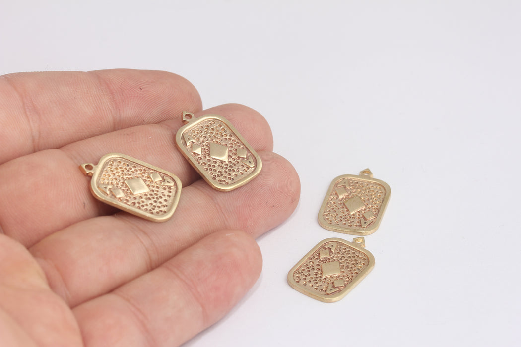 Raw Brass Playing Card, Poker Charms, Casino Charms, Ace of Clubs Charm, Poker Tile Cards Pendant, Gambling Charm, MLS712-3