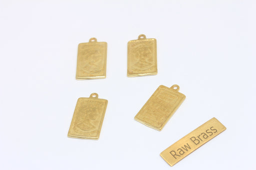 11x21mm Raw Brass Elizabeth Medallion, Square Coin Charms, Brass Antique Coins, Queen Elizabeth Necklace, ZPR313
