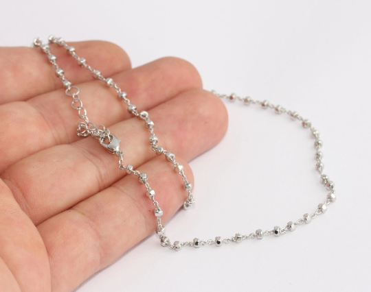 17'' Rhodium Plated Necklace, Beaded Chain, Ready Chain CHK698-3