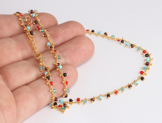 18'' + 2'' 24k Shiny Gold Necklace, Colorful Rosary , CHK729-1