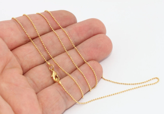 30'' 1mm 24k Shiny Gold Ball Necklace, Necklace Chains, CHK316