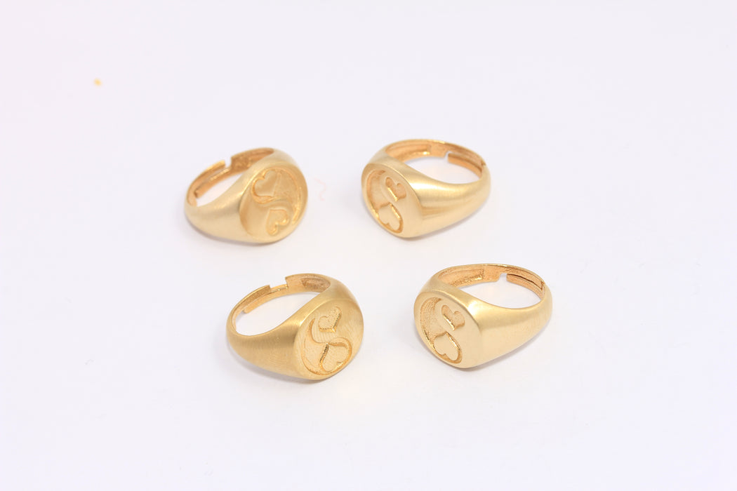 16-17mm Raw Brass Heart Rings, Brass Yin Yang Rings, Statement Rings, CHK113-1