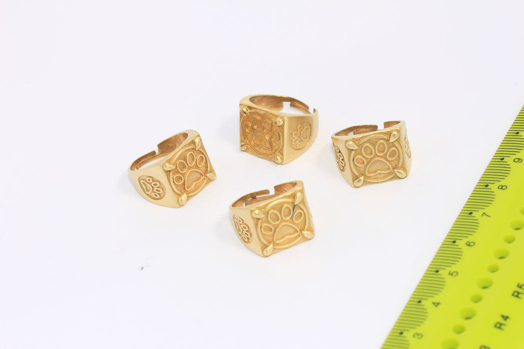 16-17mm Raw Brass Square Rings, Cute Paw Rings, CHK94-7