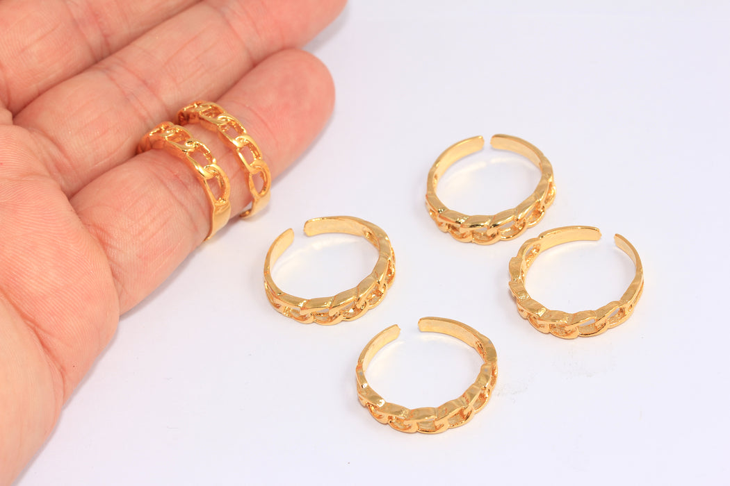 16mm 24k Shiny Gold Chain Ring, Chain Style Rings, Dainty Rings, MTE998