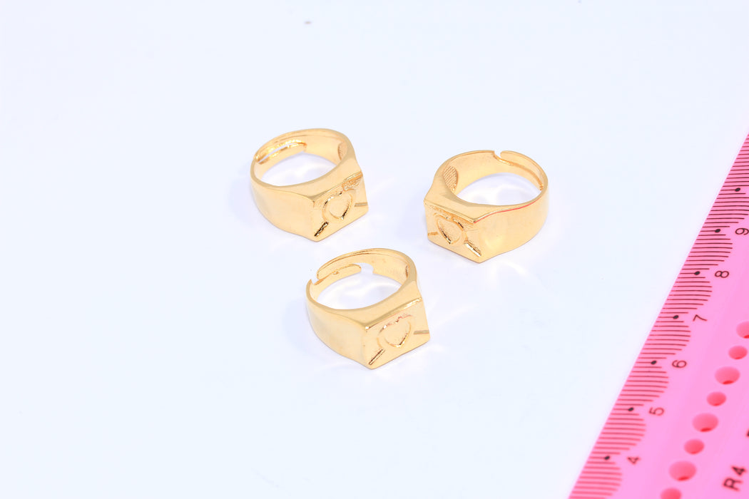 16mm 24k Shiny Gold Heart Rings, Gold Cube Rings With Heart Envelope, CHK112-2