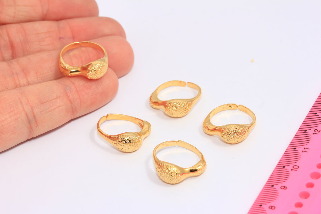 16mm 24k Shiny Gold Irregular Ball Ring, Gold Textured Ring, CHK230-6
