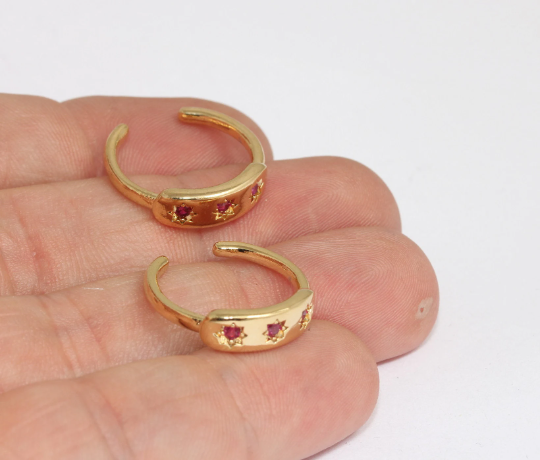16mm 24k Shiny Gold Star Ring, Micro Pave Dainty Star Ring, MLS148