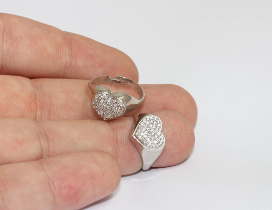 16mm Rhodium Plated Heart Ring, Micro Pave Heart Rings, MLS559