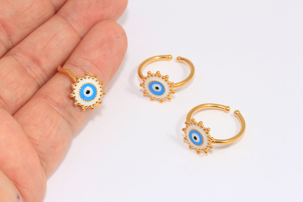 17-18mm 24k Shiny Gold Evil Eye Rings, White Enamel Evil Eye Ring, SLM684