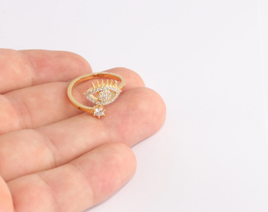 17-18mm 24k Shiny Gold Eye Ring, Micro Pave Stone Rings, SLM847