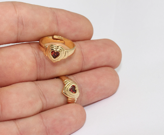 17-18mm 24k Shiny Gold Heart Ring, Micro Pave Heart Rings, MLS283