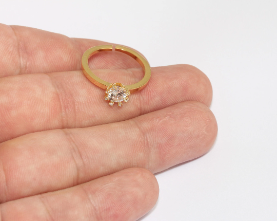 17-18mm 24k Shiny Gold Micro Pave Flower Rings, CZ Dainty MLS1013