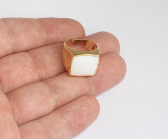 17-18mm 24k Shiny Gold Rings, White Enamel Square Rings, MLS1082
