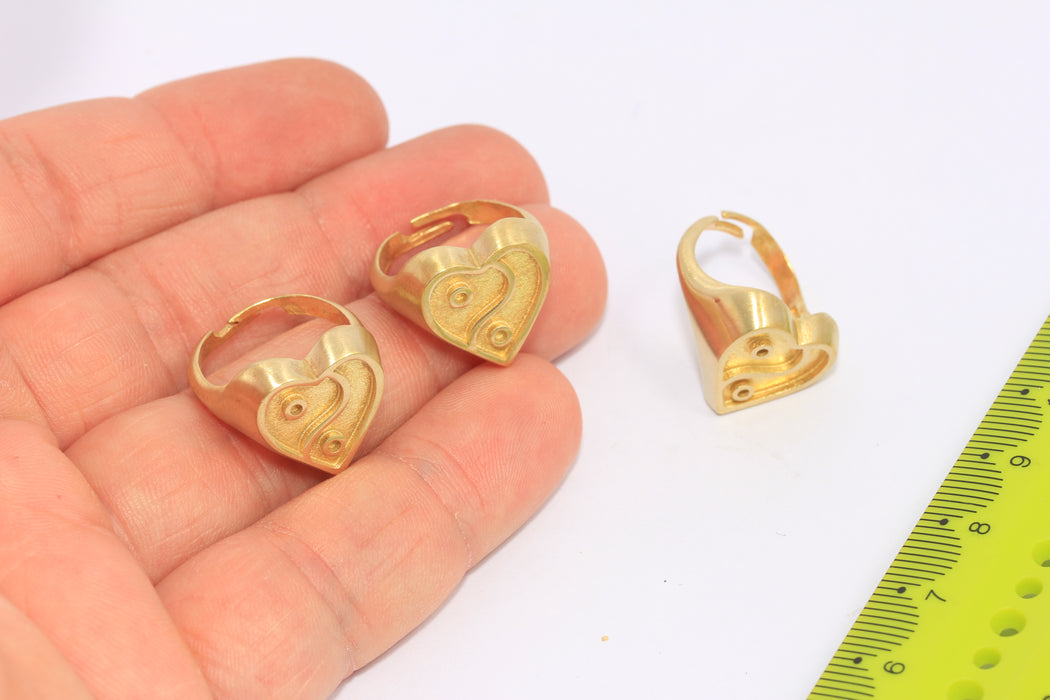 17-18mm Raw Brass Heart Rings, Brass Yin Yang Rings, Statement Rings,CHK91-5