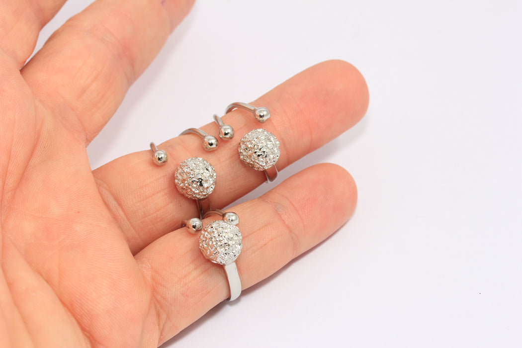 17-18mm Rhodium Plated Ball Ring, Double Wire Open Ring, CHK165-3