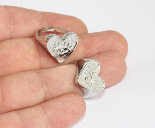 17-18mm Rhodium Plated Heart Rings, Silver Eye Rings, MLS813
