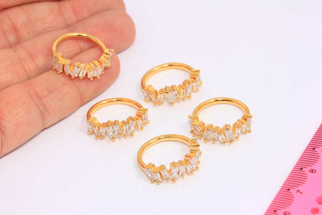 17,5mm 24k Shiny Gold Baguette Rings, Micro Pave Rings, MLS891