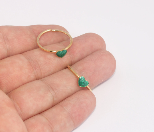 18-19mm 24k Shiny Gold Heart Rings, Green Enamel Heart Ring, SLM305-1