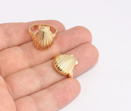 18-19mm 24k Shiny Gold ,Shell Rings, Adjustable Rings, SLM345