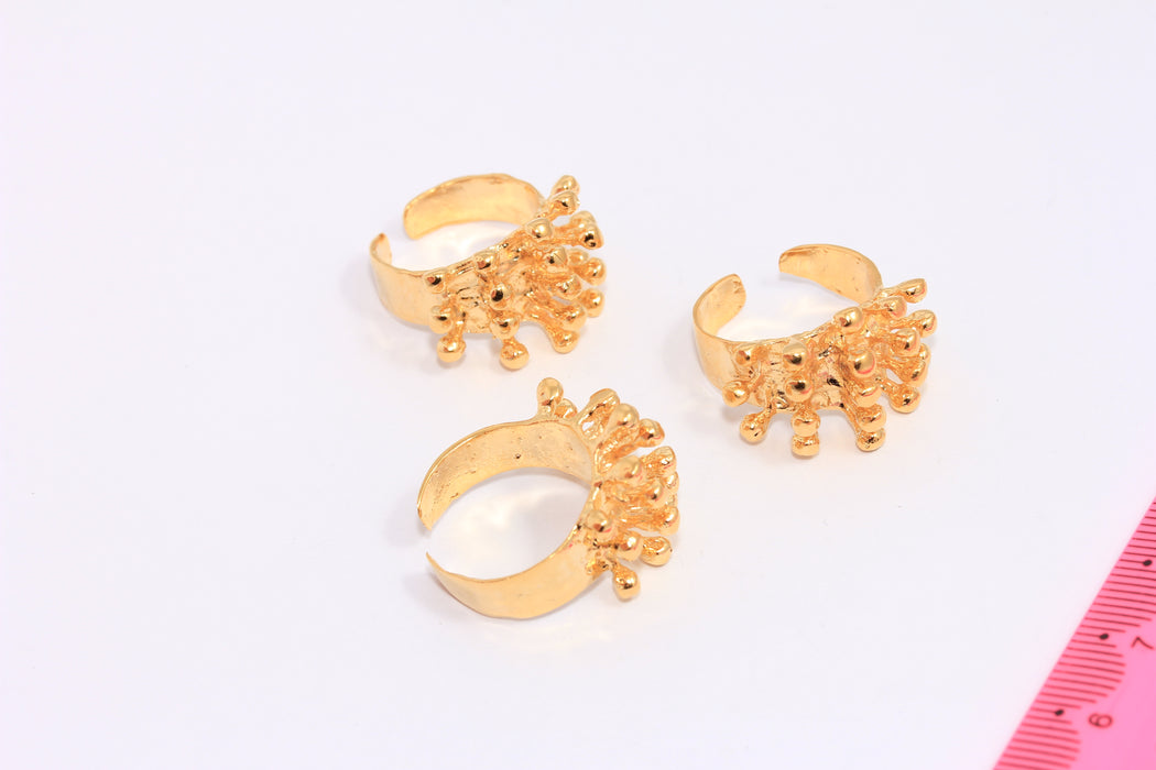 18mm 24k Shiny Gold Ball Ring, Statement Rings, Gold Plated Findings, BRT740