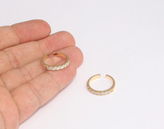 19mm 24k Shiny Gold Micro Pave Rings, Dainty Rings, CZ BRT890