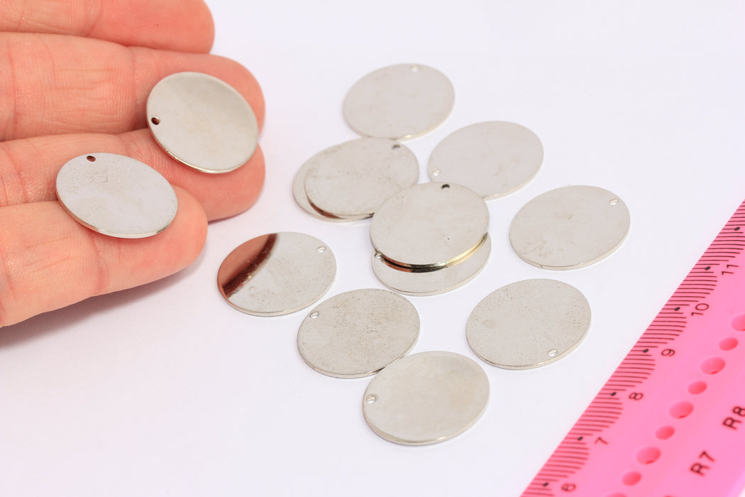 20mm Rhodium Plated Round Charms, Round Disc,coins BRT640