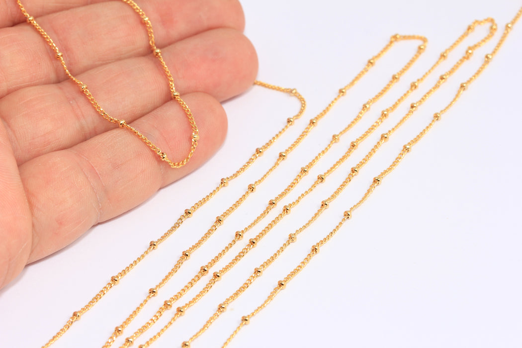 1,3mm 24k Shiny Gold Ball Beaded Chain, Gold Satellite Chain, BXB341