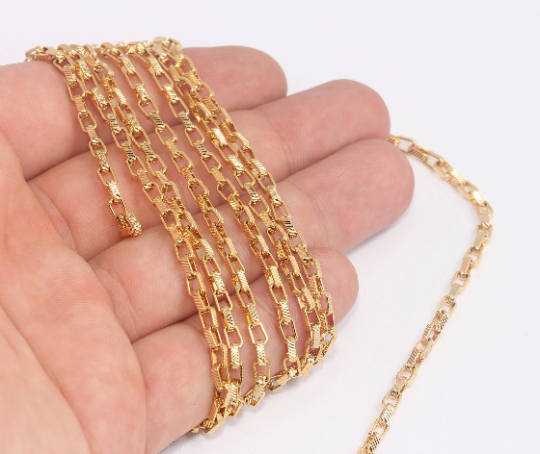 3mm 24k Shiny Gold Square Link Chain, Gold Bar Chain, CHK638