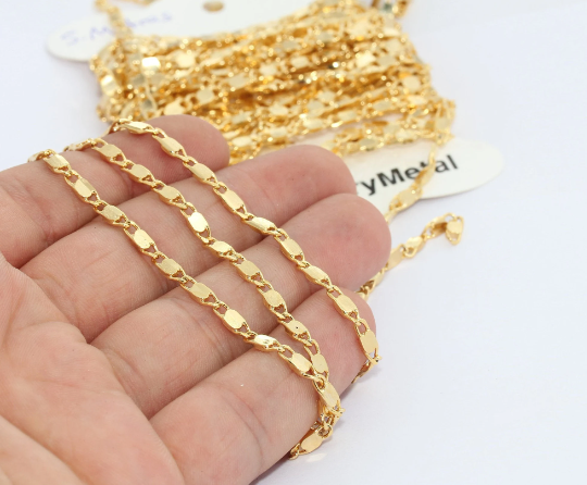 Shiny Gold Chain, Gold Bar Chain, Gold Necklace Chain, BXB295