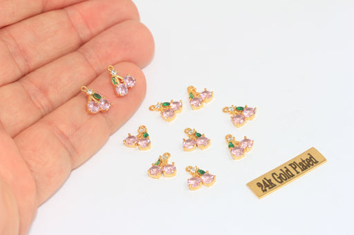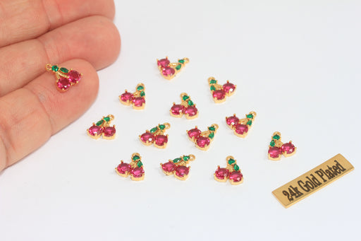8,5x10mm 24k Shiny Gold Cherry Beads, CZ Cherry Charms, MLS1027