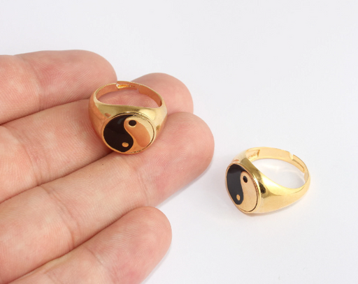 17-18mm 24k Shiny Gold Rings, Enamel Yin Yang Rings, Gold SLM74