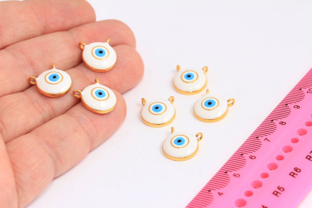 13x14mm 24k Shiny Gold Evil Eye Pendant, Evil Eye Necklace, White Enamel Round Pendant, Pendant Necklace, Dainty Pendant, ROSE570