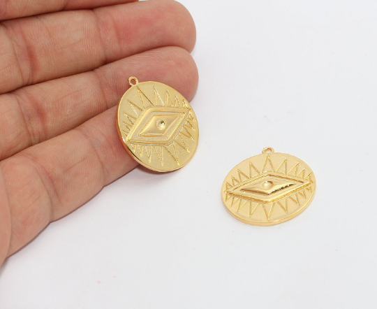 24x28mm 24k Shiny Gold Evil Eye, Eye Necklace, Charms MTE696