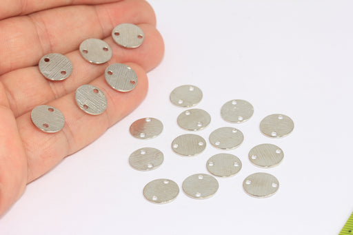 12mm Rhodium Plated Coin Charms, Two Hole Disc Connector Beads, BXB433-4