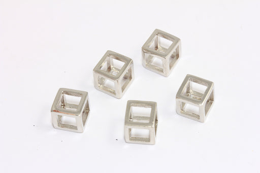 10mm Rhodium Plated Cube Charms, Open Cube Pendant, 3D Cube Charms, CR181