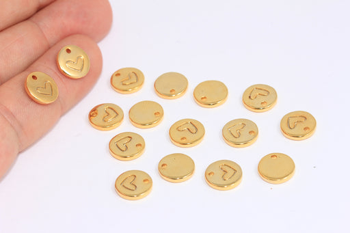 10mm 24k Shiny Gold Heart Coin Charms, Heart Coins, Love Charms, BXB437-2