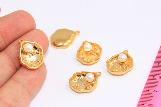 15x17mm 24k Shiny Gold Sea Shell Charm, Seashell Charm, Pearl In Shell Pendant, XP37