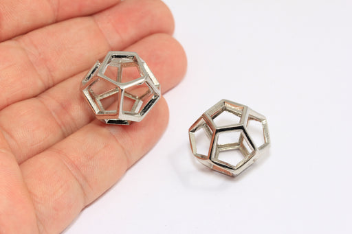 18x10mm Silver Plated Open Pyramid Beads, 3D Prism Beads, Pyramid Pendant, BRT643