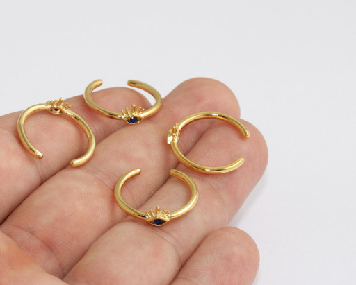 16-17mm 24k Shiny Gold Evil Eye Rings, Micro Pave, Ring MLS1098