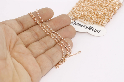 2x3mm Rose Gold Cable Chain, Rose Gold Flat Rolo Chain, BXB101