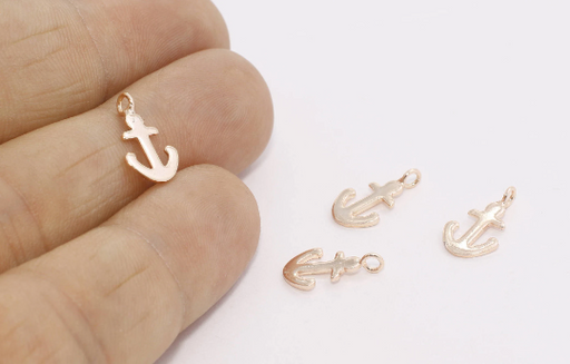 8x13mm Rose Gold Anchor Charm, Anchor Necklace, Anchor Pendant, Mini Bracelet Charms, Sailors Charms, Rose Gold Plated Findings, ROSE651