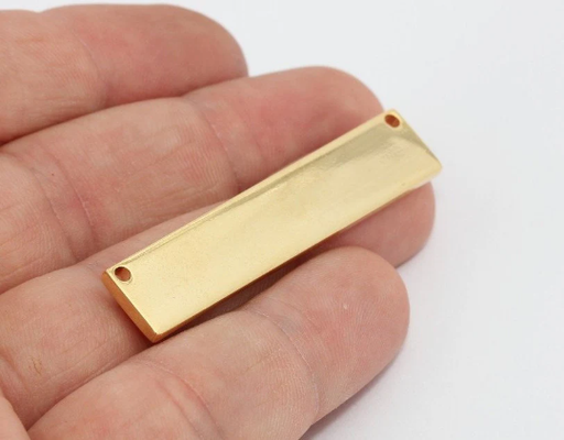 Material : BrassSize : 10x50mmThickness : 2.2mmHole size: 2mmColor : 24k Shiny Gold PlatedQuantity : Optional