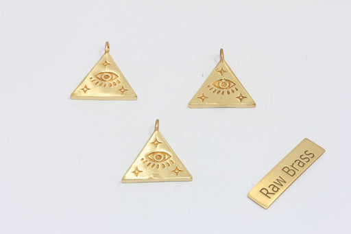 17mm Raw Brass Eye Pendant, Eye Charms, Evil Eye Pendant, Triangle Eye Beads, ZPR263