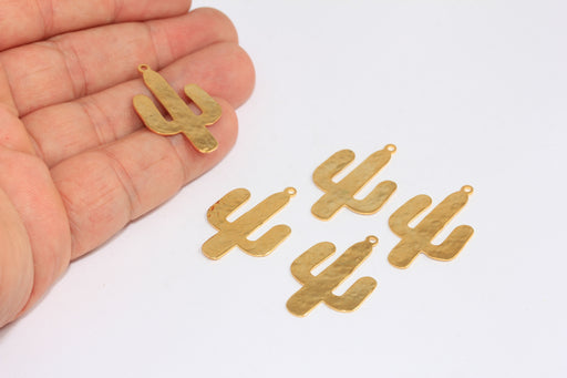 20x31mm 24k Shiny Gold Cactus Charms, Hammered Cactus Pendant, Desert Cactus Charm, BRT363