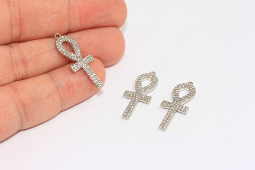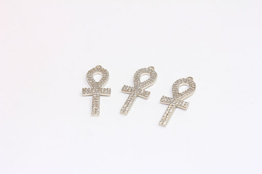11,5x28mm Rhodium Plated Ankh Charms, CZ Life Charm, CZ White Stone Ankh, BRT415