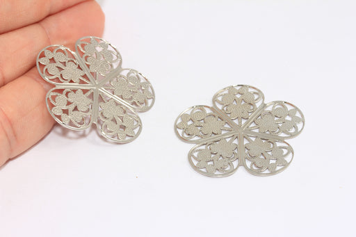 36mm Rhodium Plated Flower Pendant, Large Flower Pendant, Filigree Flower Charm, BRT538