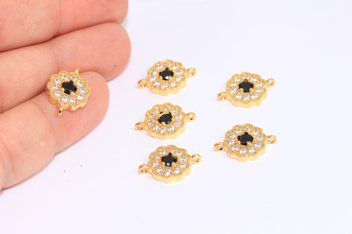 11,5mm 24k Shiny Gold Flower Charms, Micro Pave CZ White Stone Flower Connector Charms, ROSE258