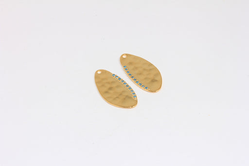 16x34mm 24k Shiny Gold Hammered Teardrop Charms, CZ Drop Earring Charms, Micro Pave Turquoise Stone Charms, ROSE36
