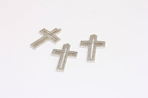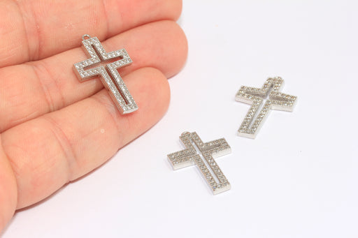 16x26mm Rhodium Plated CZ Cross Charms, Micro Pave White Stone Cross Pendant, ROSE241