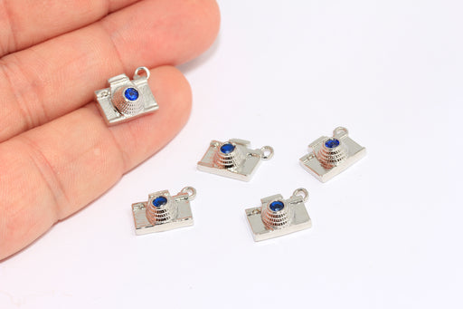 10x11mm Rhodium Plated Photo Camera Charm, Micro Pave Camera Charms, CZ Photo Camera, ROSE214-1